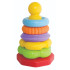 Развитие и забавление за малкото дете с ABC пръстеновидната пирамида от 5 цветни пръстена с различна форма и извита основа, която се люлее.
