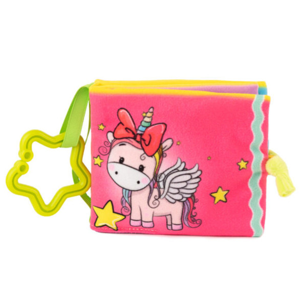 С разгръщането на всяка страничка бебето ще усъвършенства фината моторика на пръстчетата си и ще открива по нещо интересно – шумяща страничка с ъгълче за гризкане, слонче с 3D ухо, балонче с бипка, огледалце и др. Книжката е с практичен ринг за закачане за бебешка количка и кошара.