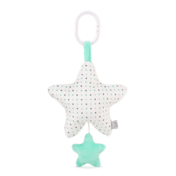 При издърпване на връвчицата от звездата започва да звучи нежна, увлекателна мелодия, която спомага за успокояването и приспиването на най-милото ви същество.