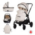 Комплектът включва: рама и седалка; кош за новородено с матрак и покривало; столче за автомобил I-SIZE (40-85 см); адаптори за столчето за автомобил; покривало за крачетата за седалката.