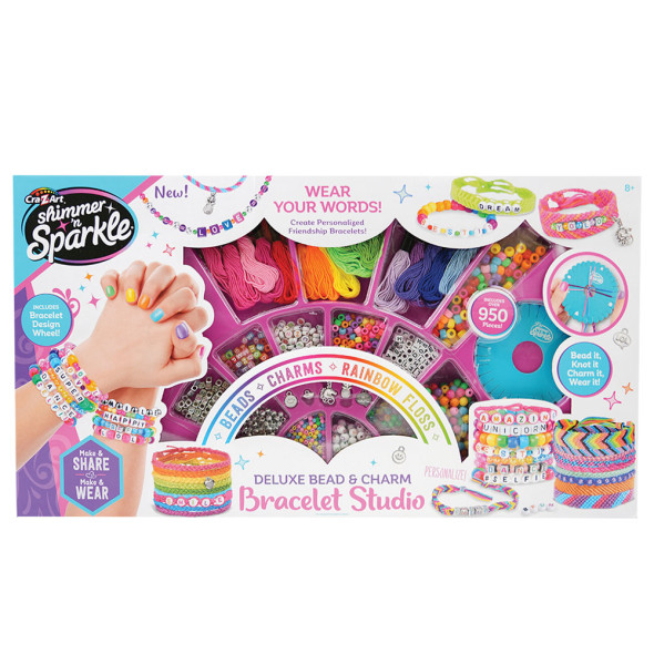 Комплектът включва: 18 връзки цветни конци х 8 m всяка; 3,66 m корда; 268 мъниста с букви, 200 малки кръгли мъниста, 200 средни мъниста, PONY мъниста: 100 малки и 100 големи; 50 металически мъниста, 10 талисмана, 18 халкички, 2 кръгли станчета, игла, 6 минипакетчета.