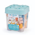 Забавна кутия за съхранение с 50 едри строителни блокчета в меки цветове, за подпомагане на развитието на въображението и фините двигателни умения на малкото дете.