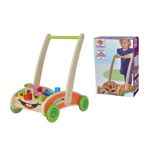 Проектирана така, че мъникът да може стабилно да се движи, като се захване за дръжката. Когато се умори да вози играчките си, детето може да се забавлява с кубчетата, като ги сортира и подрежда по различни начини.