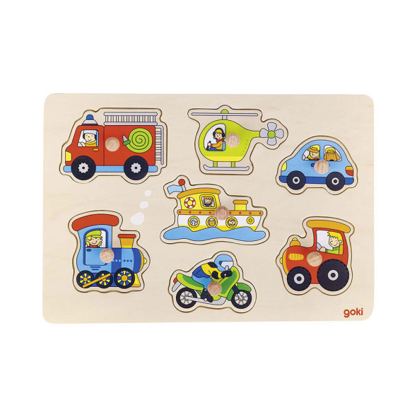 Запознайте малчуганите със заобикалящите ни превозни средства. Частите на пъзела имат дървени дръжчици, които улесняват придвижването им.