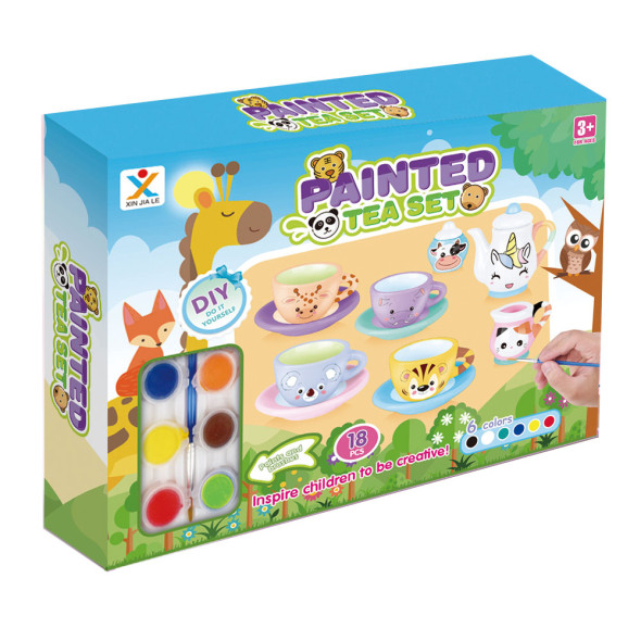 Керамичен сервиз за чай за оцветяване Painted Tea Set Животни 18ч.