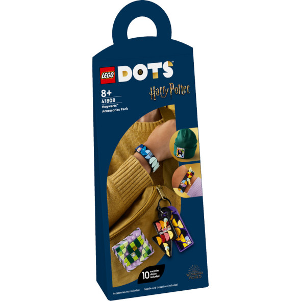 Искате ли забавен комплект за фенове на Хари Потър и деца над 8 години? Подарете им този комплект LEGO® DOTS Хогуортс – пакет аксесоари (41808) и ги оставете да покажат своята страст! Комплектът включва 4 различни платна DOTS, включително двуредова гривна, кръпка, правоъгълен етикет за чанта, етикет за чанта с белега с формата на мълния на Хари Потър, ключодържател и ключ. Включените плочки се предлагат в различни форми и цветове и включват украшения, държачи за украшения и 10 произволни украсени плочки (от 16 възможни дизайна). Децата могат да създават безкрайни модели, за да покажат любовта си към Хари Потър или любимия си дом в Хогуортс и наистина да изразят себе си.