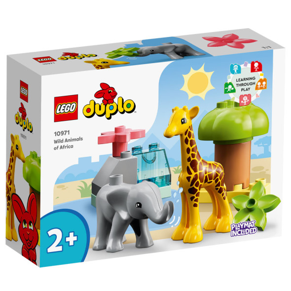 Влезте в света на игрите с въображение с LEGO® DUPLO® Дивите животни на Африка (10971) и споделете ценни, важни етапи от израстването с малки любители на животните на възраст 2 и повече години. Подходящи за малки деца животни и тяхното местообитание Запознайте децата в предучилищна възраст с животните в Африка с тези очарователни бебе слонче и бебе жирафче. Има цветя и дърво, от които лесните за хващане фигури на животни да похапват, и 3D, сгъваема горска подложка за игра, която да бъде изследвана. Тази многофункционална играчка със сафари е чудесен начин за развитие на себеизявата и фините двигателни умения на децата, докато те се наслаждават на безкрайна ролева игра с най-сладките животни в Африка. Обучение чрез игра за малки деца • Всички комплекти LEGO DUPLO са проектирани от експерти с увлекателни истории, ярки цветове, разнообразни герои и множество детайли, за да дадат на малкото ви дете ГОЛЯМ старт в живота.