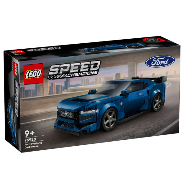 Превозното средство LEGO® Speed Champions Спортна кола Ford Mustang Dark Horse (76920) е реалистична версия от тухлички на мощния модел от емблематичния американски производител на автомобили. Децата на възраст над 9 години с удоволствие ще колекционират, строят, показват и разиграват екшън със синята кола. Колата Ford Mustang се отличава с няколко автентични характеристики от дизайна: заден спойлер, характерна решетка, фарове, ауспуси, емблеми на Ford и детайлен интериор със скоростен лост и табло. Колата от LEGO за конструиране също така се предоставя с подвижен покрив и минифигура на пилот със суичър на Dark Horse, която децата да поставят зад волана и да разиграват вълнуващ екшън с нея. Строителните комплекти Speed Champions позволяват на децата и запалените фенове на автомобили да построят реплики на някои от най-емблематичните превозни средства в света. Те с удоволствие ще създават висококачествени модели от тухлички LEGO, включващи отличителни детайли. Всяка кола може да бъде създадена с приложението LEGO Builder, което направлява вас и вашето дете в едно лесно и интуитивно строително приключение.