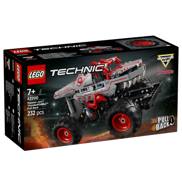 Представяме ви камион, който ще развълнува феновете на Monster Jam™ на възраст над 7 години. Този детски камион LEGO® Technic™ Monster Jam ThunderROARus™ с издърпване (42200) за момчета и момичета включва забавна функция за издърпване назад. Децата могат да пресъздадат вълнението на арената, докато изпращат своя камион-динозавър напред с пълна скорост и пресъздават екшън триковете на любимите им камиони-чудовища. Този детайлен камион-чудовище има впечатляващ екстериор, включително шиповете, люспите и зъбите на ThunderROARus – вдъхновената от динозаврите звезда от Monster Jam! Комплектите с превозни средства LEGO Technic се отличават с реалистично движение, за да въведат младите строители с LEGO във вселената на техниката. Този комплект е чудесен подарък за деца, които обичат Monster Jam, играчки, свързани с моторните спортове и комплекти с превозни средства LEGO.