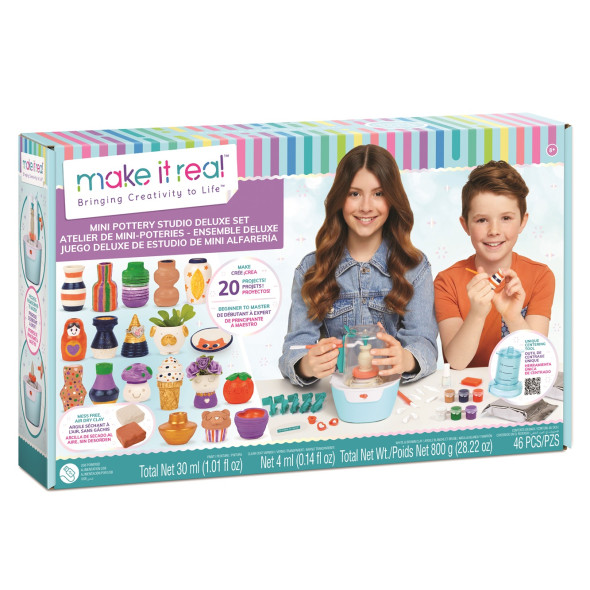 Комплектът съдържа: моторна част, работна база, предпазен купол, 4 бр. центриращи елемента, 1 четка, тапи за крачета от пяна, 8 накрайника, 1 ос, 1 плик бяла и 1 плик кафява глина общо 800 g, 2 моделиращи инструмента, гъбичка, 1 въртящо колело, 4 помощни накрайника, 6 цвята боички общо 30 ml, мерителен пластмасов лист, 3 перфоратора и 3 шаблона за рязане на глина, USB кабел.