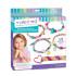 Комплектът съдържа: сърцевиден елемент, 4 цвята брокатни връзки – общо 6 м, 7 цвята цветни памучни връзки – общо 20 м, 1,5 м сребърна нишка, 2+2 талисмана, 38 мъниста, работна основа.