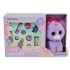 Комплектът съдържа: плюшена играчка - Еднорог с блестящи очи, червило, 2 броя гланц за устни, 2 фибички за коса, 2 ластика - спирала за коса, пръстенче.
