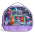 В практичната прозрачна чантичка ще намерите: палитра сенки за очи в 6 цвята х 1 g, апликатор, балсами за устни в кутийка 2 х 2 g, гланц в тубичка 6 ml, лак за нокти два цвята х 4 ml всеки, блестящи декоративни стикери за нокти.