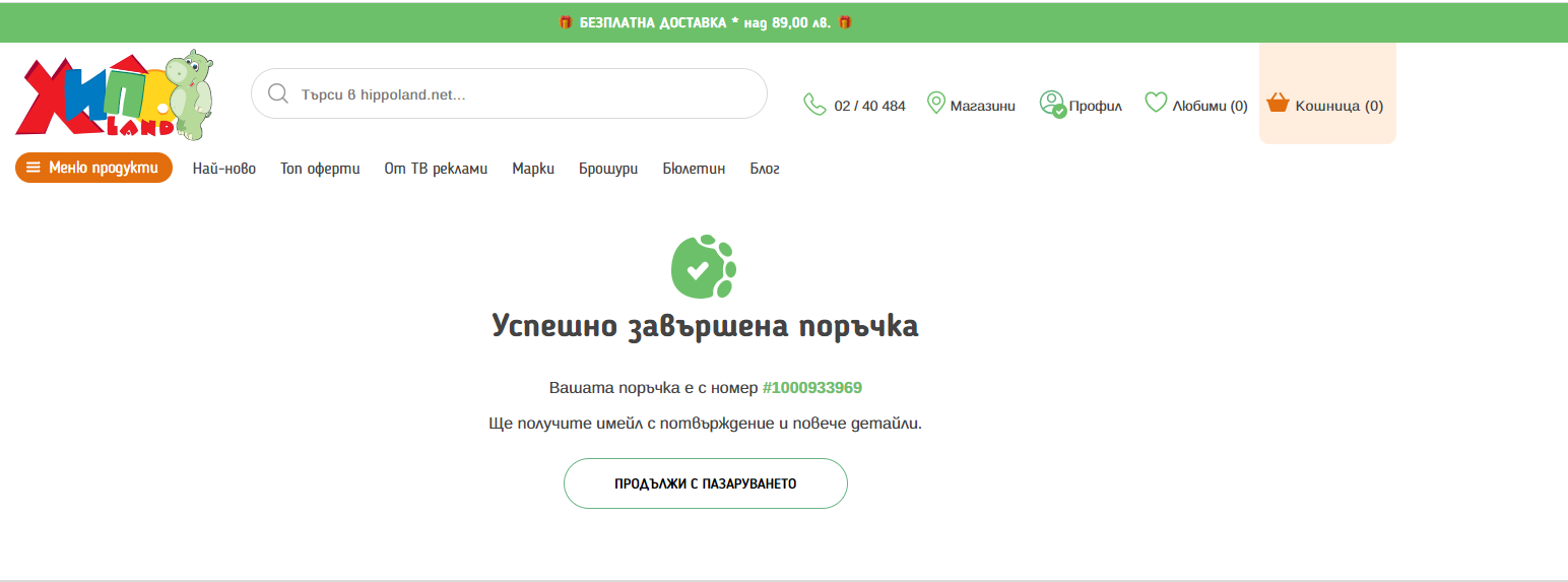 Успешно завършена поръчка приключва с ето такъв финален екран: