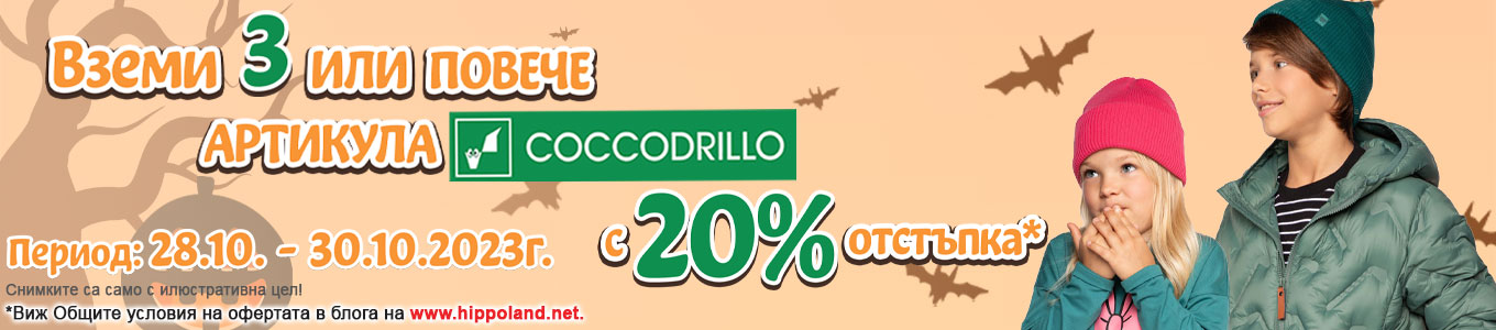 - Офертата важи само за артикулите от новата колекция Есен-Зима 2023 на Coccodrillo, с обозначение в етикета ZC3, във физическите магазини Хиполенд и в електронния магазин на Хиполенд.