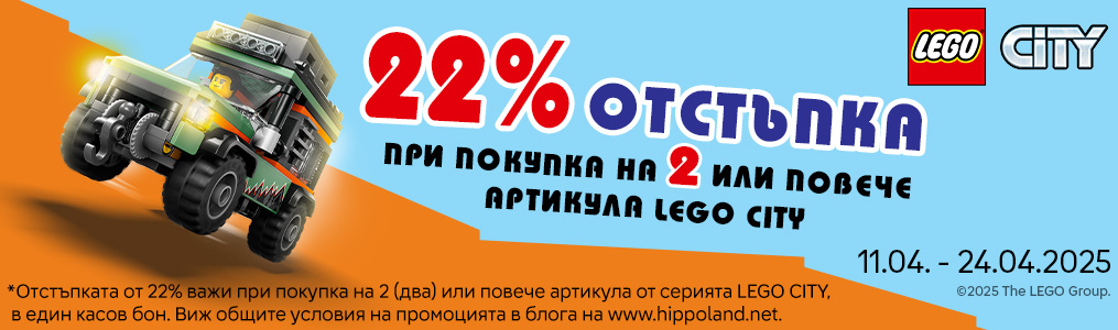 Офертата важи за всички артикули от серията LEGO CITY във физическите магазини Хиполенд и в електронния магазин на Хиполенд.