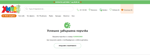 Успешно завършена поръчка приключва с финален потвърдителен екран.