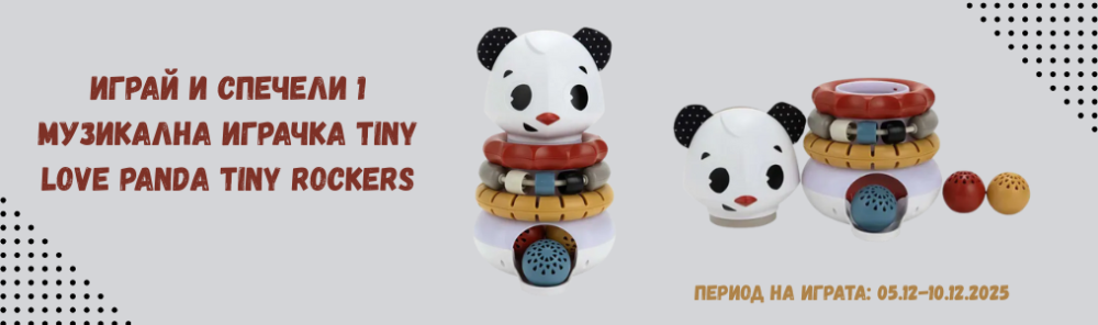 Раздава се 1 (една) награда – музикална играчка Tiny Love Panda Tiny Rockers.