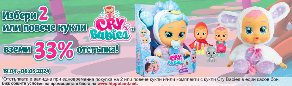 Офертата важи за всички кукли и комплекти с кукли CRYBABIES, налични към