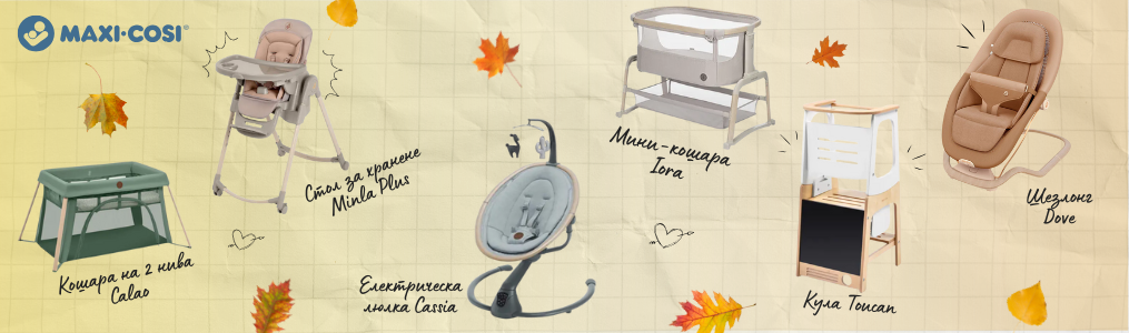 Разгледайте всички продукти на Maxi-Cosi за детската стая в Хиполенд и създайте уютно, безопасно и функционално пространство за вашето бебе, където есента е топла и пълна с щастливи моменти.