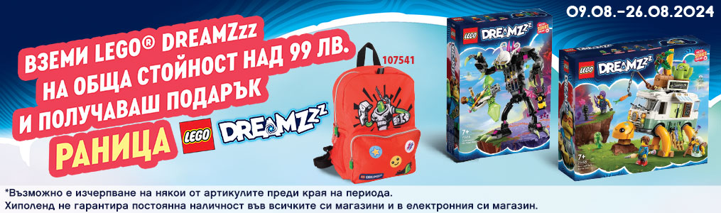 cтoйнocт нaд 99 лв. в eдин ĸacoв бoн, пoлyчaвaш пoдapъĸ раница LEGO DREAMZzz (код на