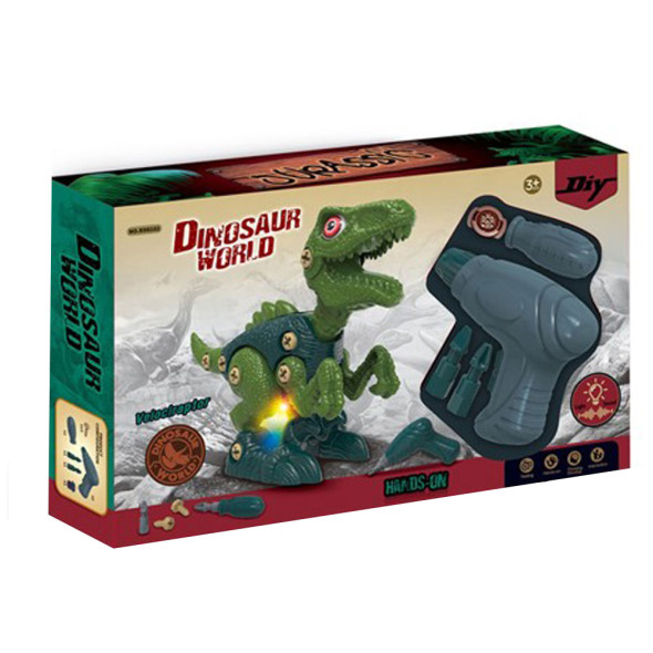 Батерии: 2 х AG13 за динозавъра и 2 х 1.5V AAA за винтоверта (не са включени в комплекта).