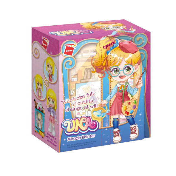 Конструктор Qman от серята Уна , включва фигурка на кукла - художник , гардероб, както и нейните аксесоари.