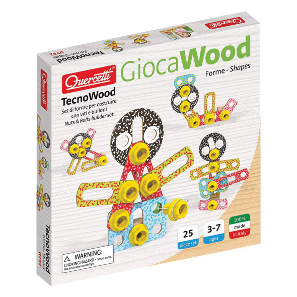 • Частите на детският конструктор са изработени от дърво и пластмаса в ярки и забавни цветове,които стимулират ръчните умения и творческото мислене,като го приближава до основните принципи на механиката.