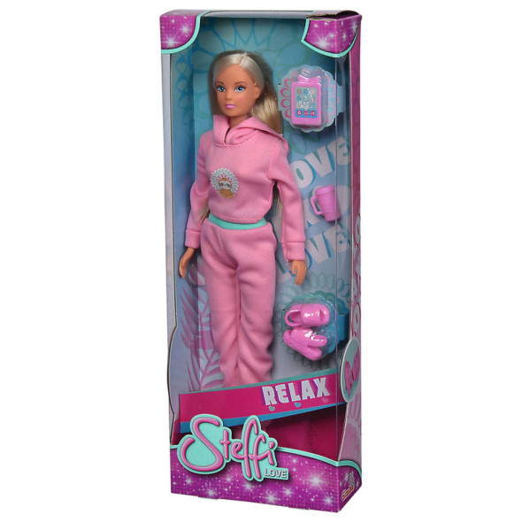 Стефи носи модерен анцуг с напитка, таблет и готини обувки