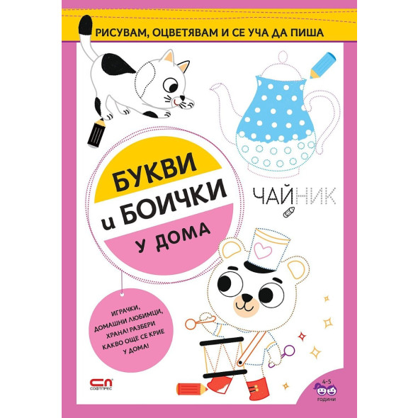 С тази книжка детето ще се забавлява, като рисува и оцветява различни предмети от дома, докато обогатява речника си и прави първи стъпки в писането на думи.