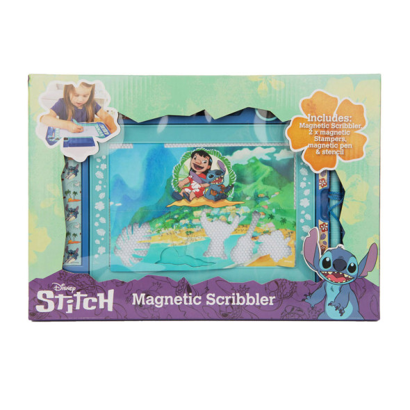 Комплектът включва: дъска за рисуване, две магнитни печатчета, магнитна писалка и шаблон.