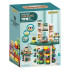 Комплектът включва рафт за магазин с размери 110 x 70 x 34 см, който осигурява много място за излагане на различни продукти. Цветовете на магазина са зелено и бежово, което му придава приветливо и реалистично излъчване. Рафтът е предназначен за поставяне на различни хранителни продукти и аксесоари.