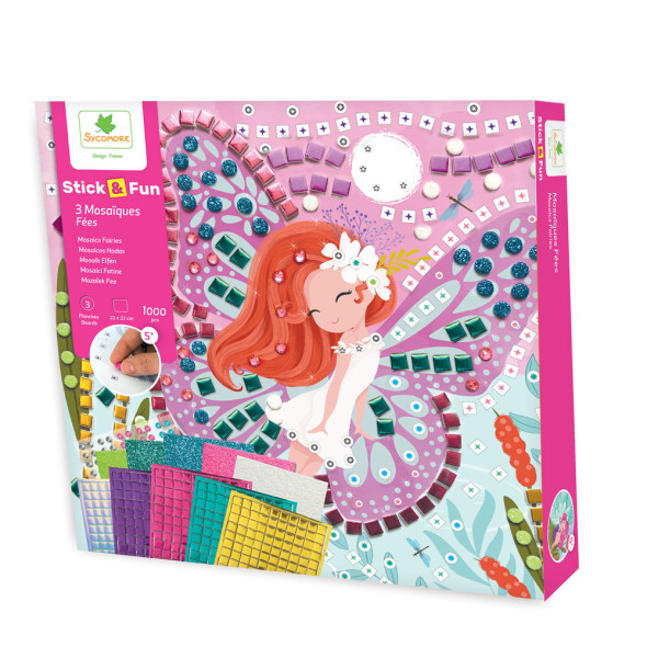 Колекцията Stick & Fun от Sycomore предлага широка гама от самозалепващи меки мозаечни плочки за декориране на цветни и бляскави картини.