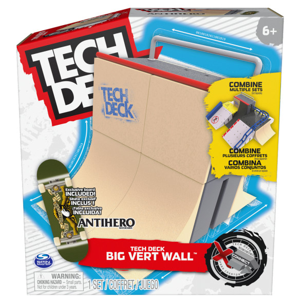 Изпълнявай епични трикове с автентичните мини скейтбордове за пръсти на Tech Deck! Те са проектирани да възпроизвеждат усещането за истински скейтборд. Приготви се за супер каскади с Tech Deck и пресъздай собствено скейт преживяване с X-Connect! Комплектът "Вертикална стена" включва всичко необходимо, за да построиш и персонализираш невероятен парк, да усъвършенстваш скейтърските си умения. Изпробвай различни комбинации с ексклузивния скейт, включен в комплекта!