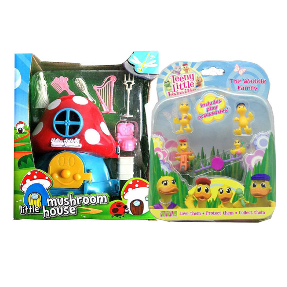 Комплектът включва фигурите на две жабки и много аксесоари, между които фотьойл, два стола, камера, сешоар, маса с касов апарат и още.