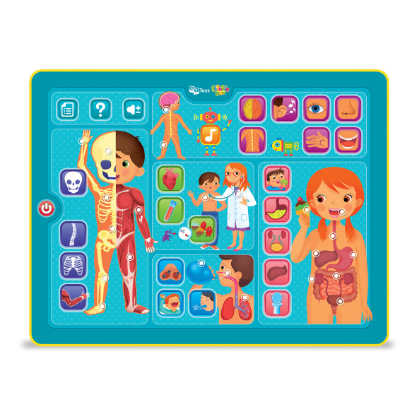 Образователният таблет представя човешкото тяло чрез игра. Човешкото тяло е сложен механизъм, състои се от скелет, мускули, кръвоносни съдове и различни органи. Играчката ще разкрие на детето как те си взаимодействат, каква роля изпълняват и много други интересни факти. Веселите мелодии и интересни въпроси добавят забавен елемент и правят научаването на нови неща лесно и приятно.