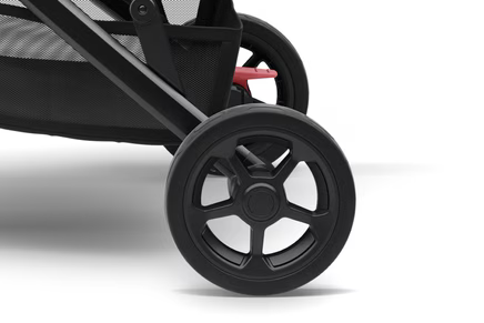 Въртящо се предно колело с окачване, което може да се заключва в фиксирана позиция за комфортно возене навсякъде.