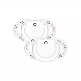 • Щитът на залъгалките е със специално проектирани форма и извивки, така че да приляга удобно между брадичката и нослето на бебето;