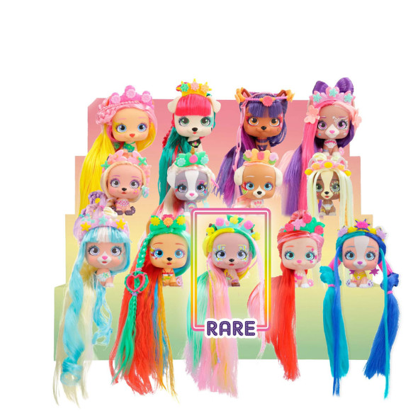 Запознай се с VIP PETS - най-модерните кученца с най-дългите коси и множество аксесоари! Това, което ги свързва, е страстта им към прическите! Тези страхотни кученца са със супер дълга коса за стилизиране и 6 аксесоара изненада. Те обичат да са с различни прически за всеки повод и се нуждаят от твоята помощ, за да придобият перфектен външен вид.