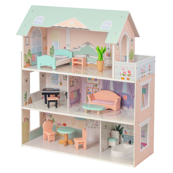 Напълно оборудваната дървена къща за кукли е задължителна за всяка млада дама в нейната стая. Създай своя собствена уникална къща, която можеш да декорираш по свой вкус. Къщата е с модерен и истински вид и е богато обзаведена.
