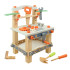 Детска дървена работна маса и комплект инструменти - ученето чрез игра помага за развитието на фините двигателни умения и насърчава разбирането на принципите на STEAM за наука, технологии, инженерство, изкуства и математика. Перфектният комплект дървена работилница, богато оборудвана с множество инструменти, на които много майстори могат да завидят. Включва гаечен ключ, линийка, чук, отвертка и много винтове и дървени части за упражняване на строителни умения. Приготви се да строиш, деконструираш и строиш отново. С тази удобна маса можеш да се почувтваш като истински майстор и да чукваш, измерваш и затягаш винтове и различни дървени части.